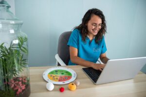 Nuestra compañera Alba se encarga de evaluar el estado nutricional de los pacientes y de diseñar planes de alimentación individualizados y personalizados que contribuyan a mantener o mejorar la salud.